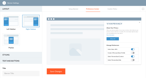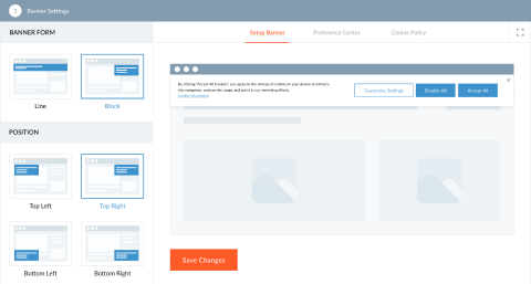 Tailor a banner based on your cookie consent approach and create a custom preference center that allows visitors to select which types of cookies and tracking technologies they want to enable or disable.